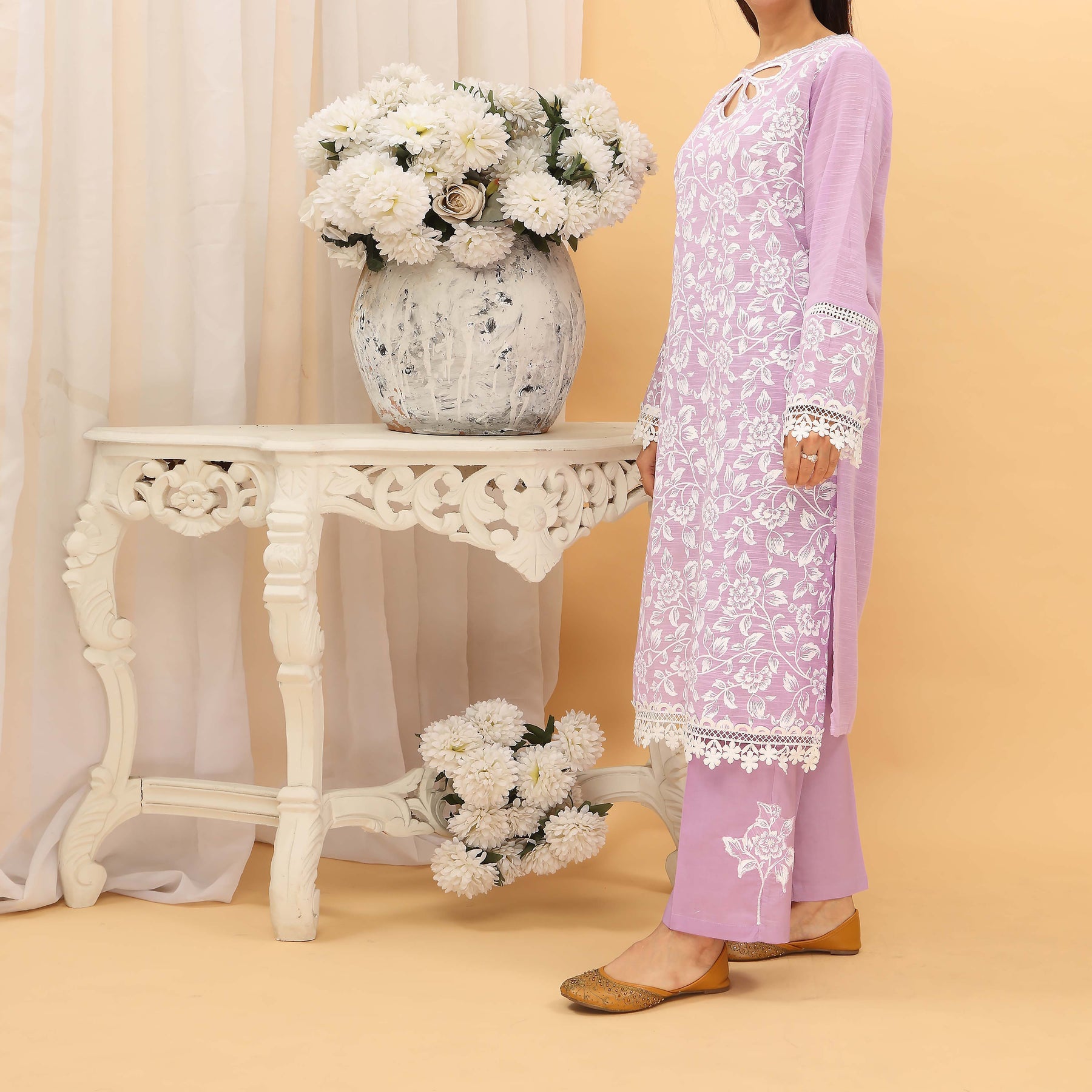 Slub Lawn Screen Printed Shirt With Stitching Details And Cambric Trouser With Motif