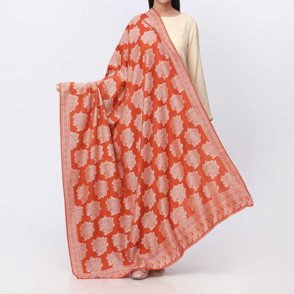 Upgrade your eastern winter outfits with this jacquard winter acrylic shawl in white color.