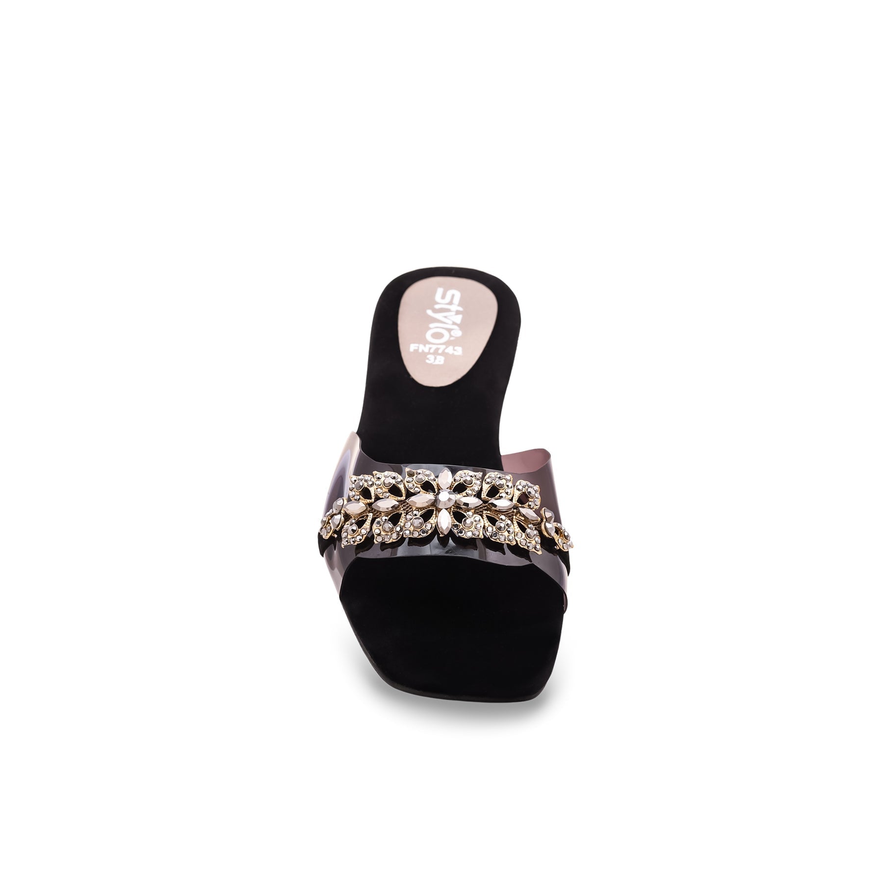 Get heads turning wherever you go with our stylish black fancy slippers, making your feet happy and your style pop