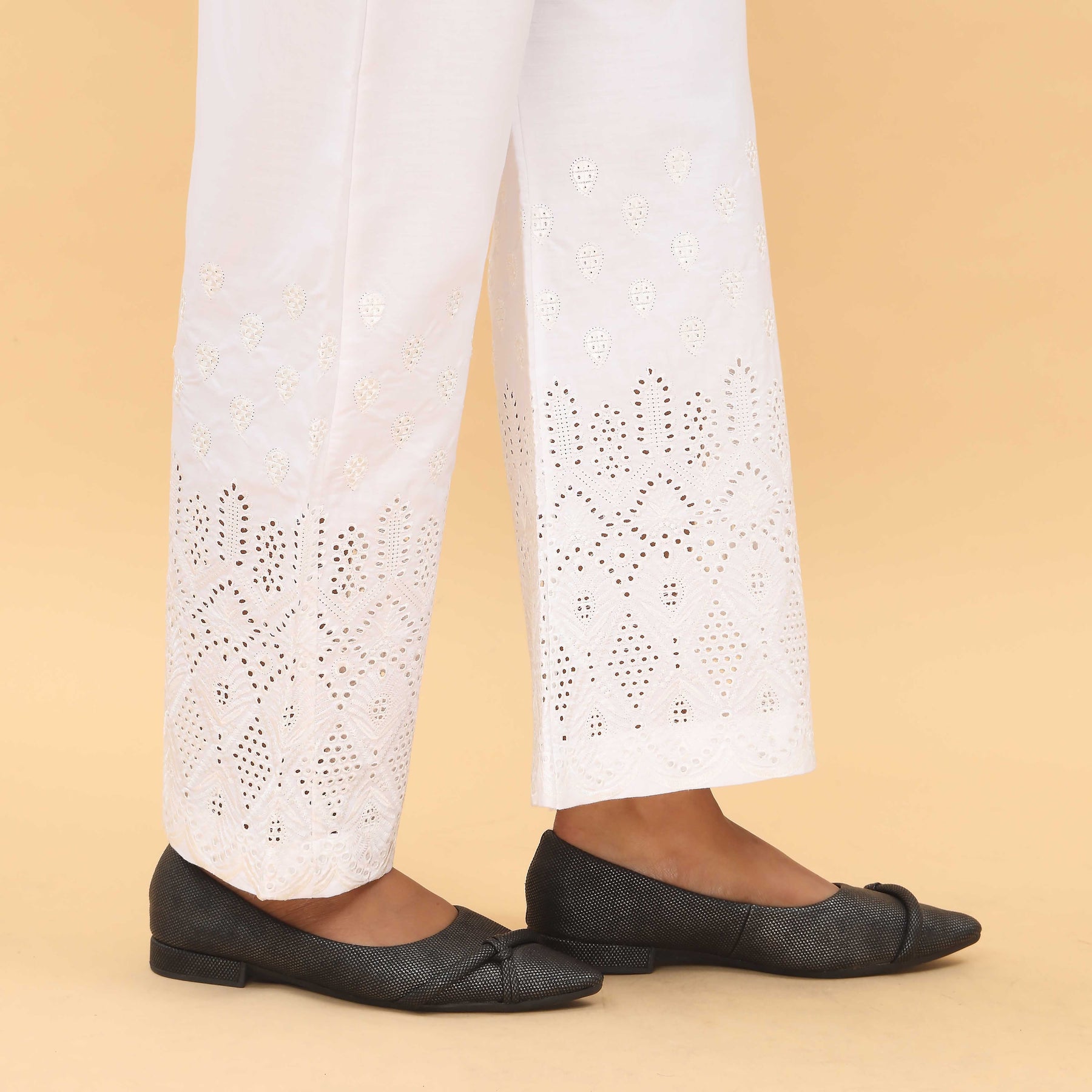 White Straight Fit Embellished Trouser PL4057